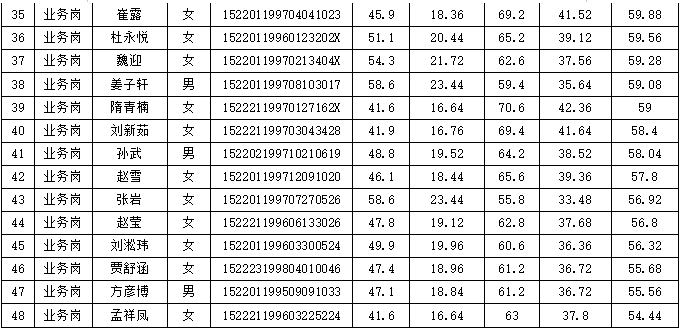 附件:烏蘭浩特市農(nóng)村信用合作聯(lián)社2019-2020年校園招聘總成績(jī)