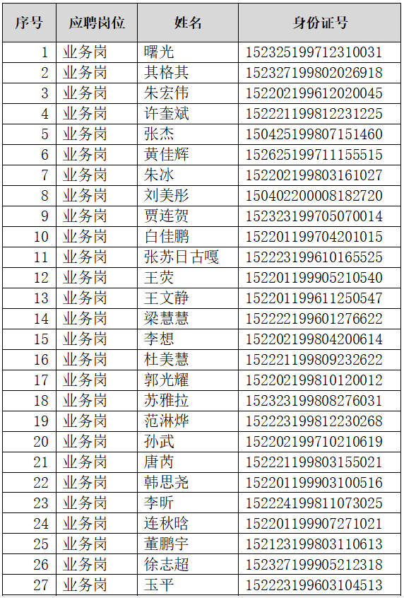 經(jīng)過現(xiàn)場資格初審,以下人員入圍筆試環(huán)節(jié),現(xiàn)公布如下(名單):