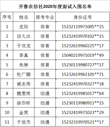 開魯縣農(nóng)信社關(guān)于2020年度校園招聘進(jìn)入面試人員的公告
